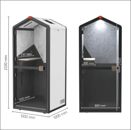 Silent Pod Solo 2 är vår minsta pod för en person. Solo 2 har ett brutet tak för ett mer designat utseende. Den kommer komplett med belysning, vägguttag, USB uttag och bord. Hela poden ventileras av dubbla fläktar i taket. Finns i flera färger på utsidan och insidan.